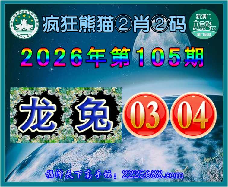 105期: 😳『疯狂熊猫』 😳②肖②码😳【龙兔】【03.04】开:00准